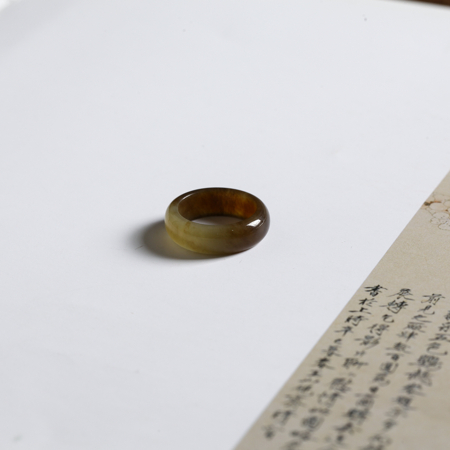 14号戒指 新疆和田玉糖料糖玉圆弧泥鳅背素圈指环 7748