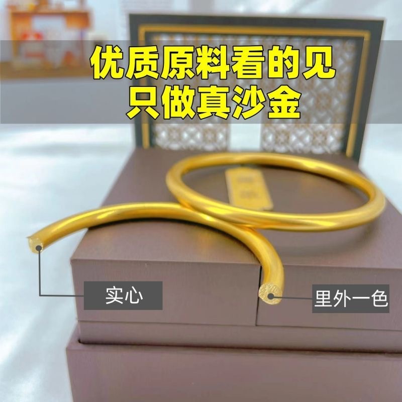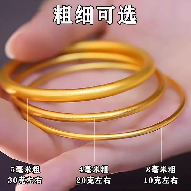 古法黄金手镯仿真传承越南沙金手镯女素圈手环结婚首饰锡金不掉色