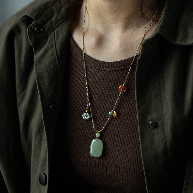 亏米福利!天然和田玉祥云无事牌吊坠男女项链挂坠玉佩玉坠