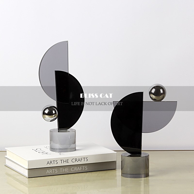 现代轻奢极e简透明水晶几何摆件售楼处客厅书房玄关桌面家居装饰