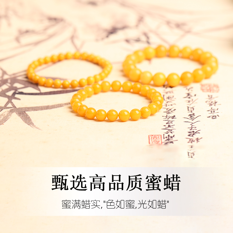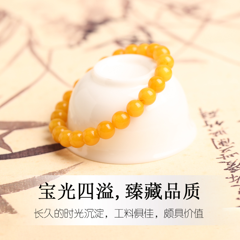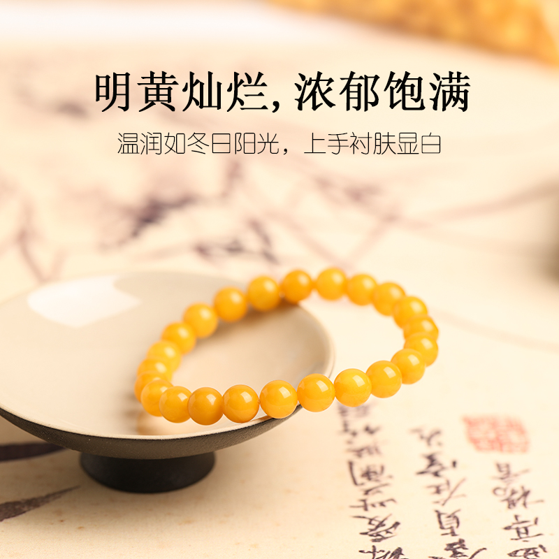 天然蜜蜡手串女鸡油黄色琥珀宝石盘玩轻奢小众精致串珠手链LC