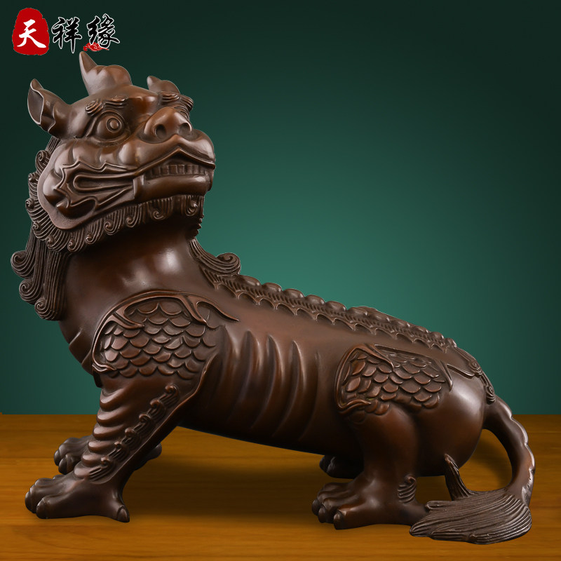 黄铜谛听摆件九华山地藏坐骑独角兽谛听工艺品客厅玄关办公室装饰