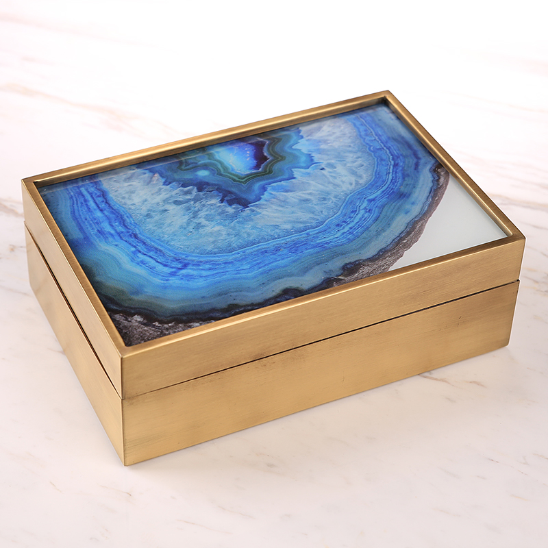 新中式轻奢欧式铜大理石玻t璃收纳首饰盒样板房摆件玛瑙家居装饰