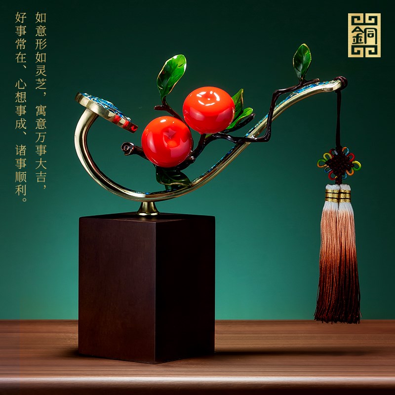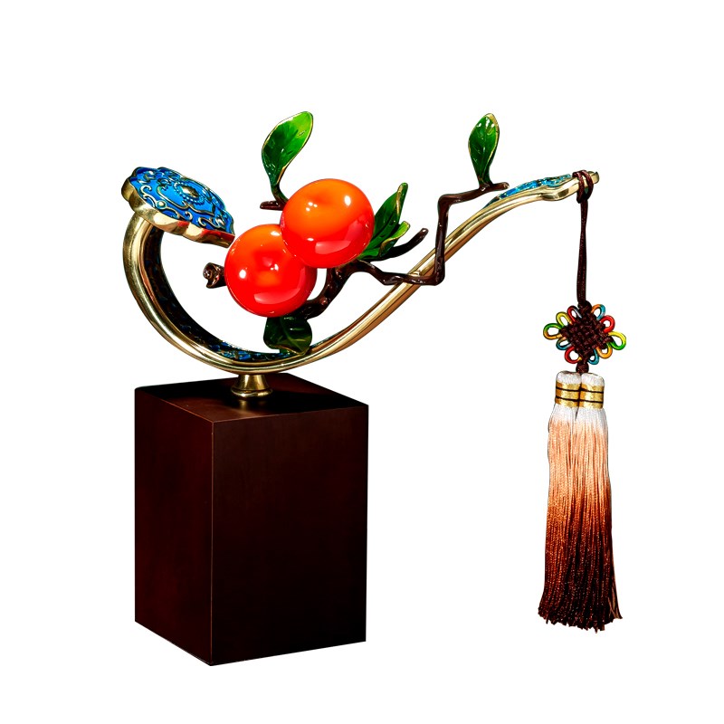 新中式柿柿事事如意柿子摆件高档玄关客厅酒柜装T饰品乔迁新居礼