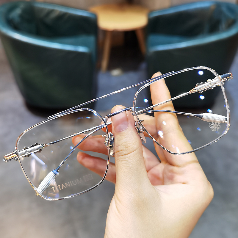 新款简丹萝心眼镜框男女潮双梁复古加宽大脸超轻钛架近视眼镜架
