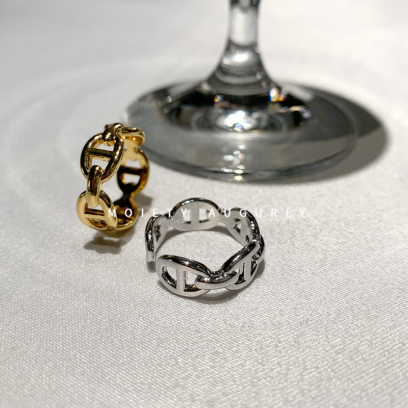 AUGUREY猪鼻子两色链条开口戒指蹦迪情侣网红同款欧美小众高级感
