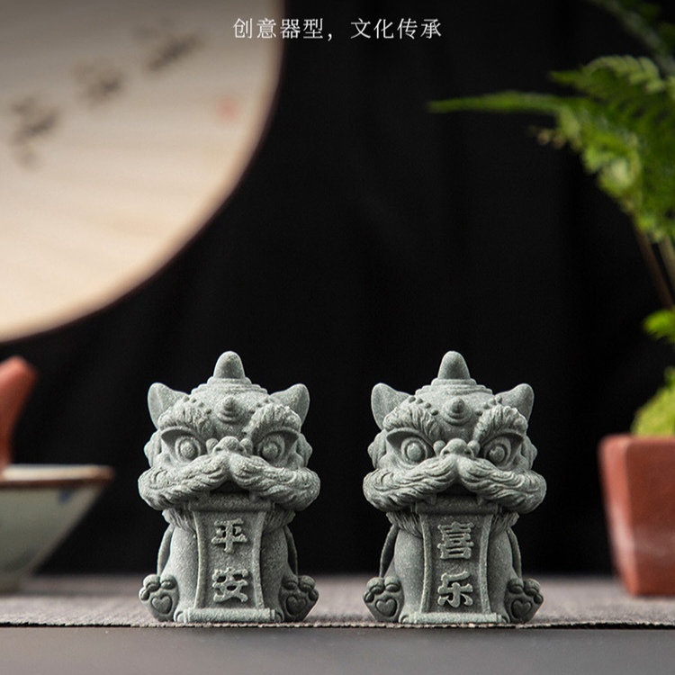 微景观装饰醒狮石狮子桌面茶宠摆件吉祥物鱼缸草缸手礼小物件礼品