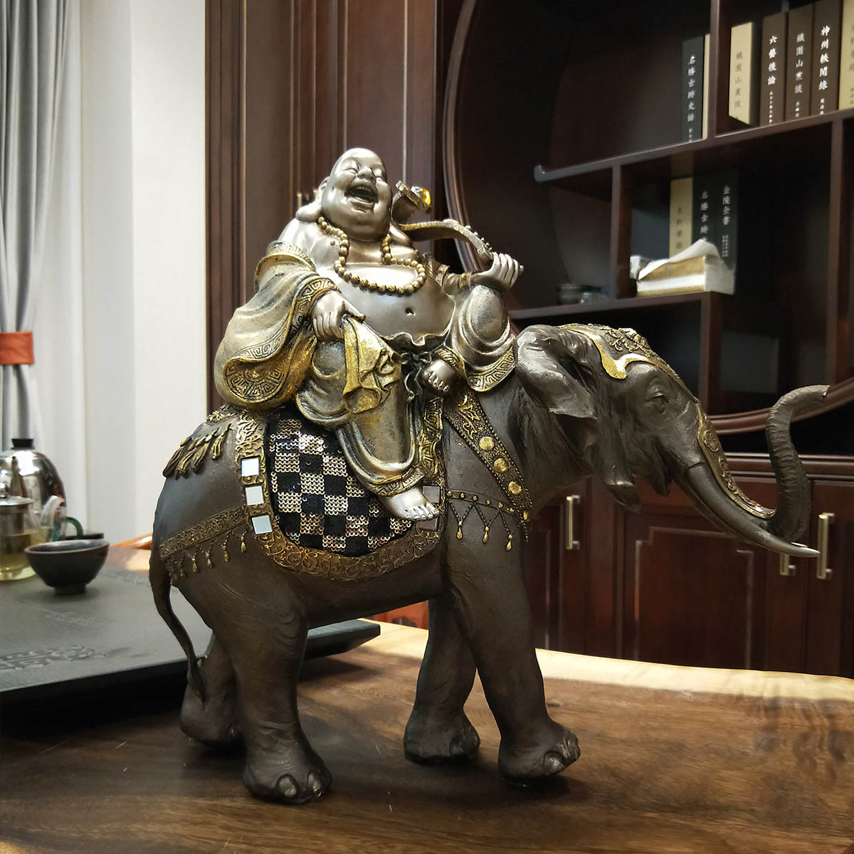 大号大象摆件招财镇宅风水客厅装饰品动物神像工艺品禅意弥勒佛像