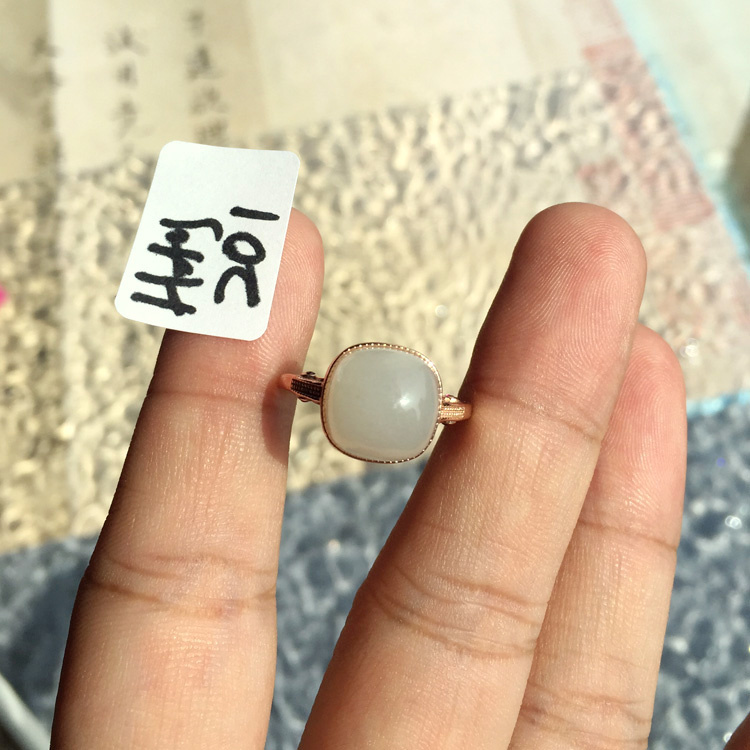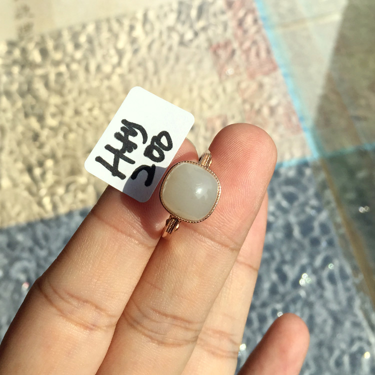 Sweet配饰 天然和田玉烟紫烟灰方糖戒指 戒圈可调 S925银镀玫瑰金
