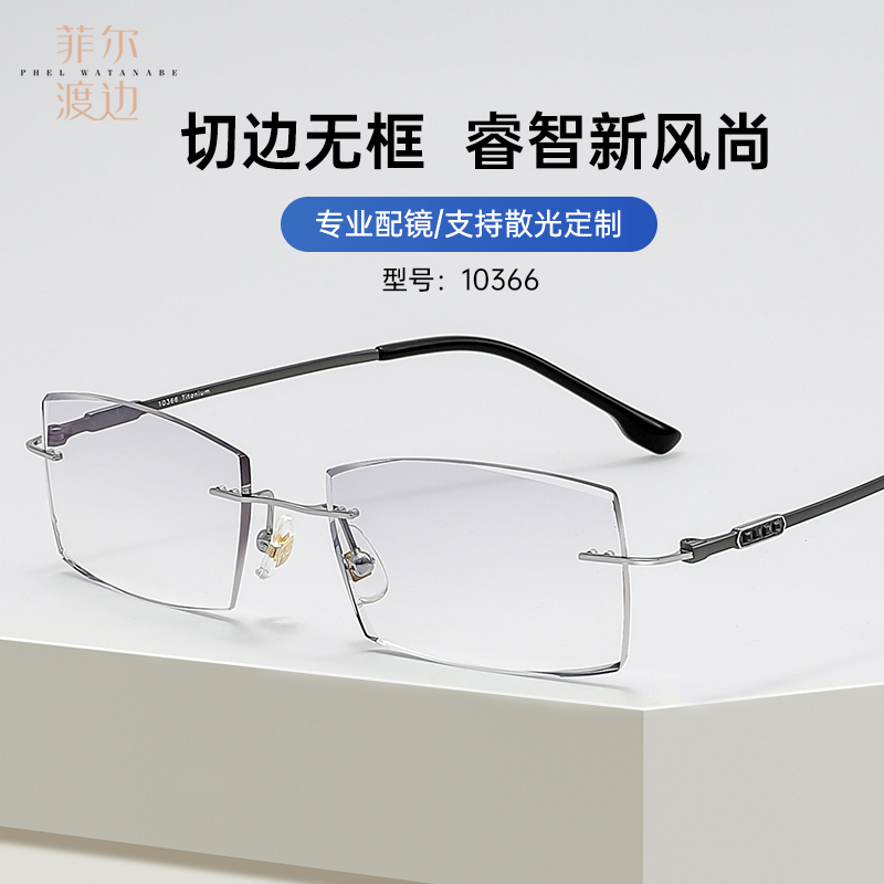 钻石切边眼镜无框切割近视眼睛框大脸男可配钛架成品有度数10220