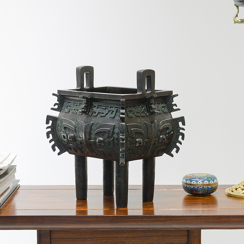 古铜官禺方鼎大号门厅仿古青铜器铜鼎摆件办公室乔迁公司开业礼品