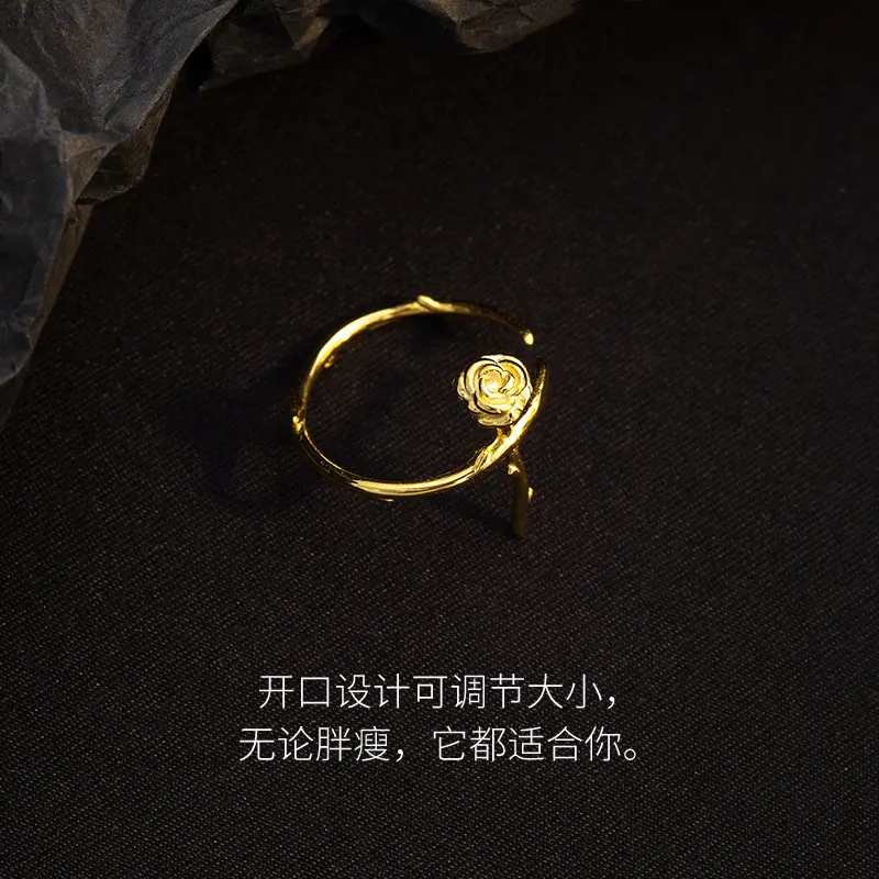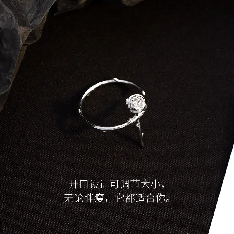 s925银立体玫瑰花戒指女小众设计感ins食指戒冷淡风手指环