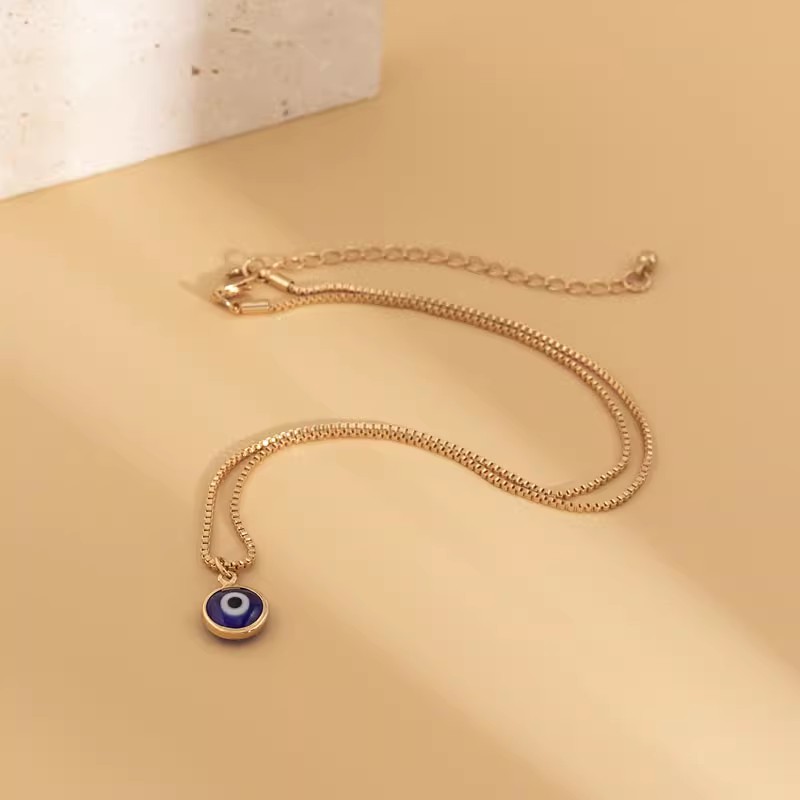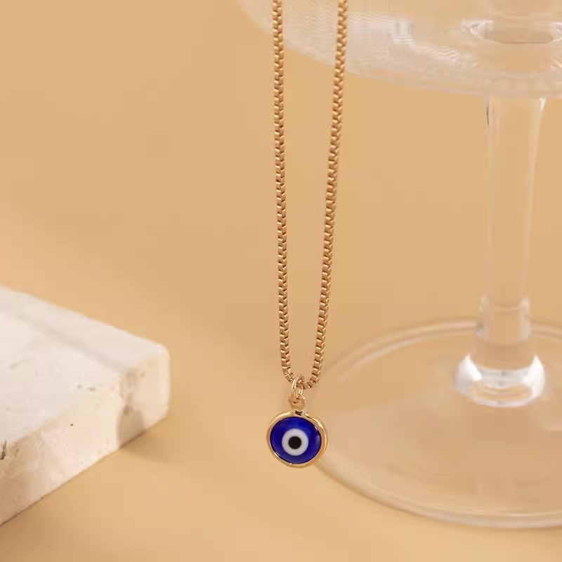 眼睛吊坠盒子链项链女 欧美冬季时尚简约清新气质搭配T恤锁骨链
