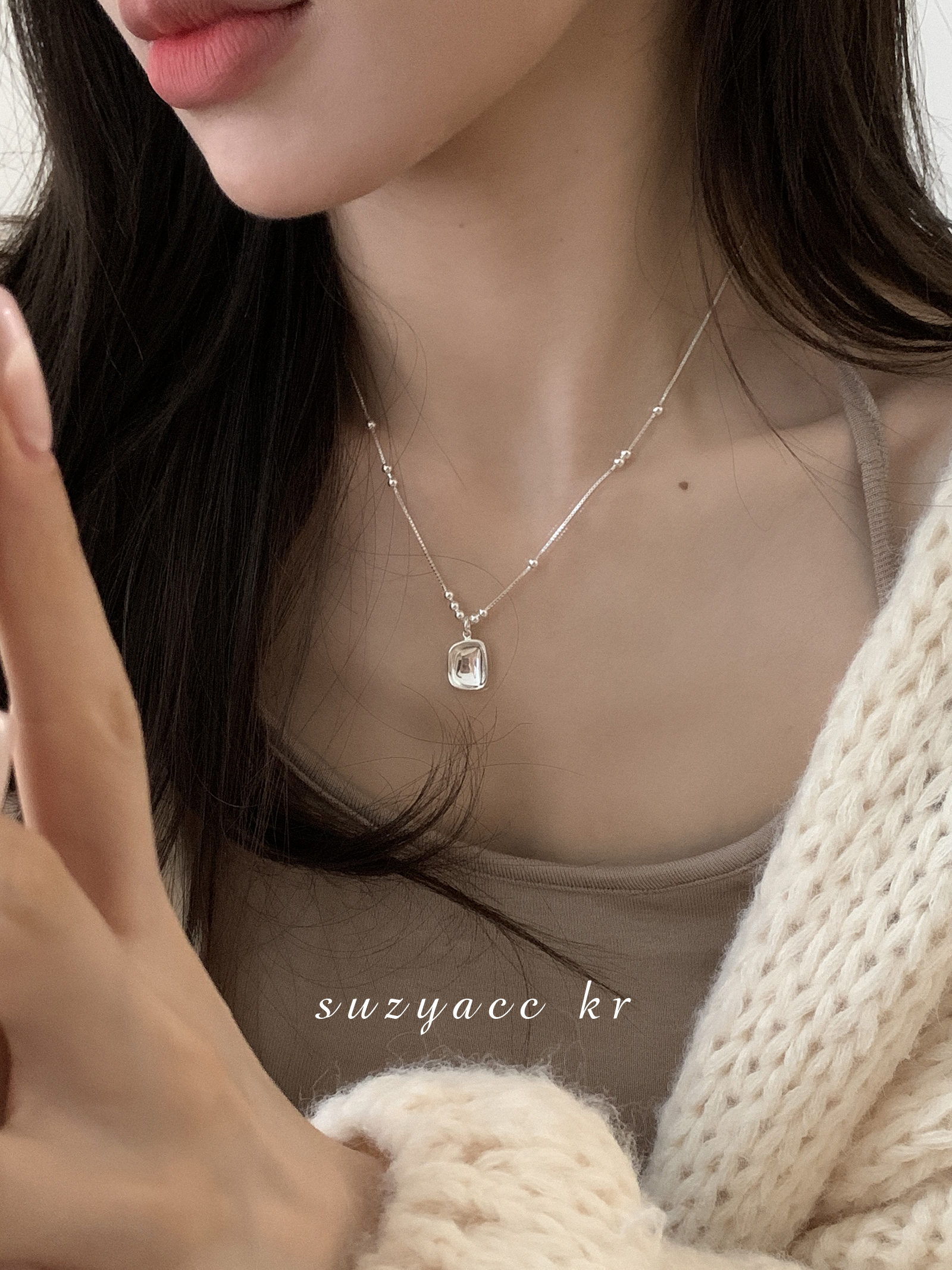 suzyacc kr简约百搭纯银方形吊坠项链2024新款爆款小众设计毛衣链