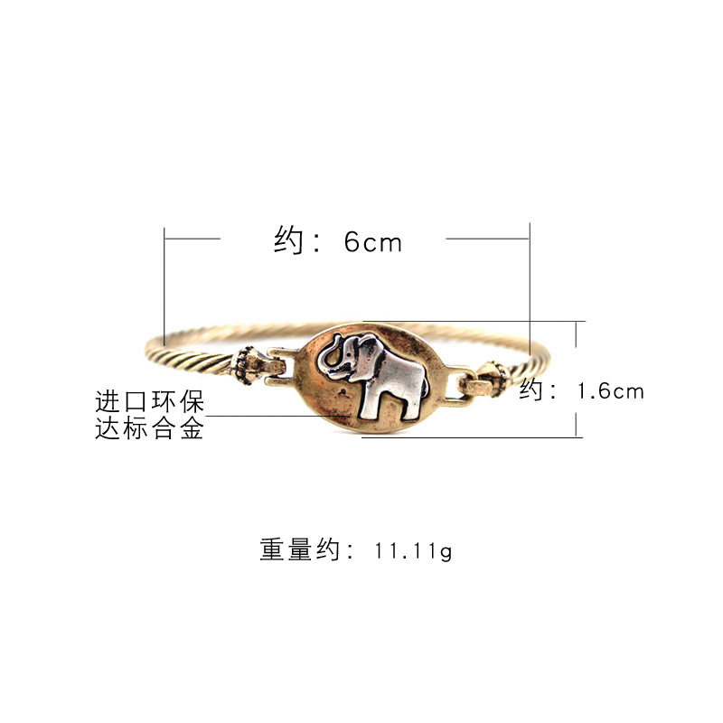 99克拉欧美风动物图案饰品可爱小象椭圆形螺旋质感手镯女(QA)