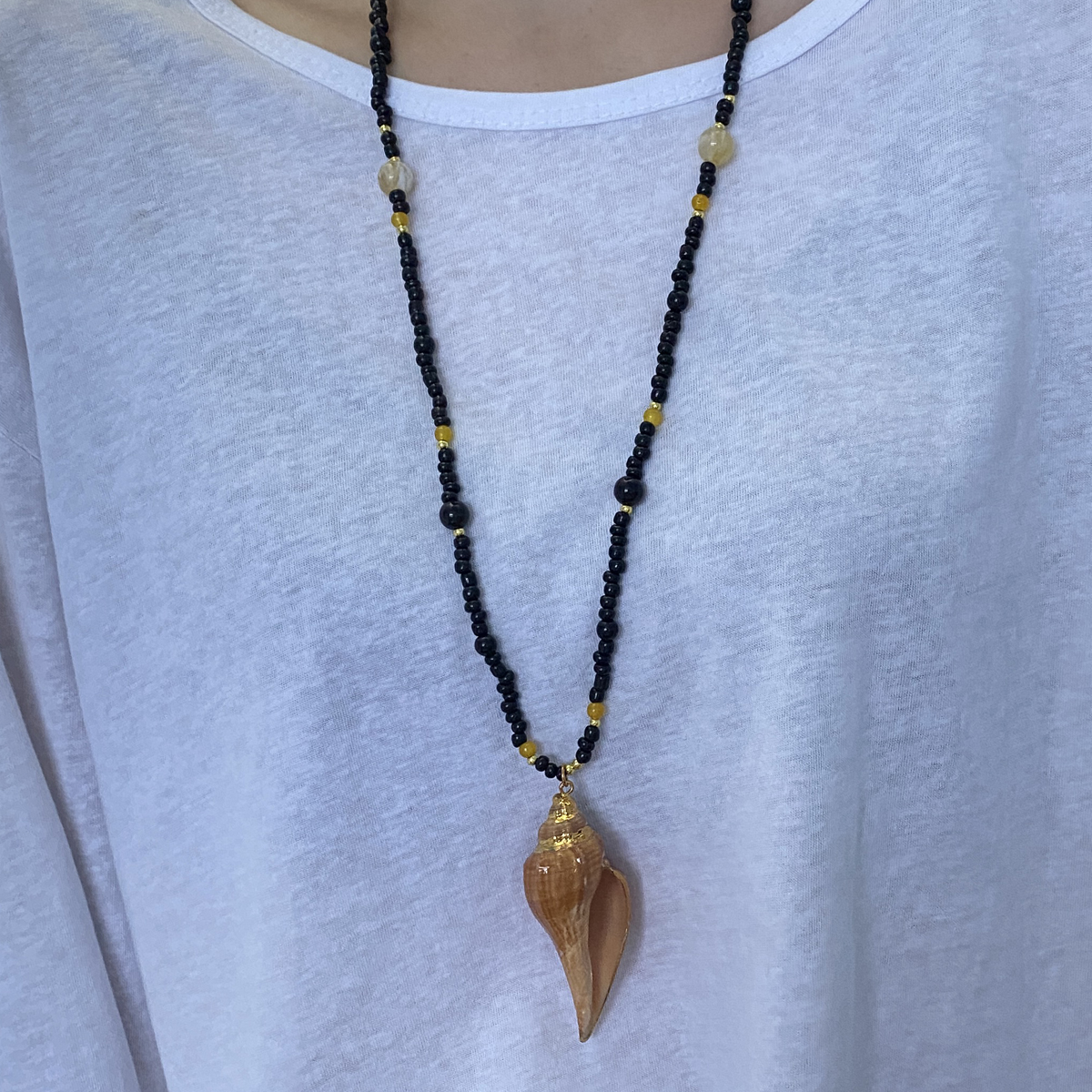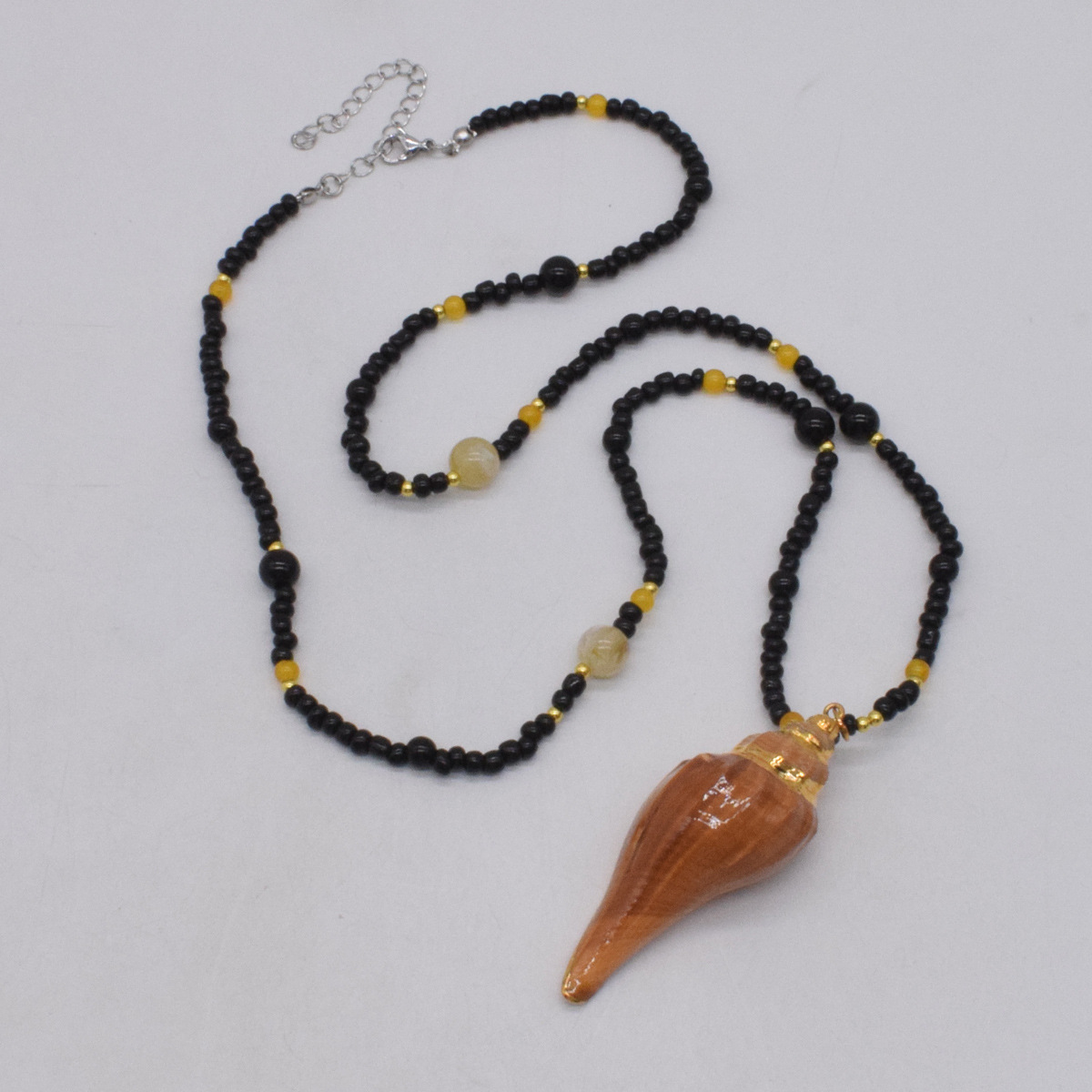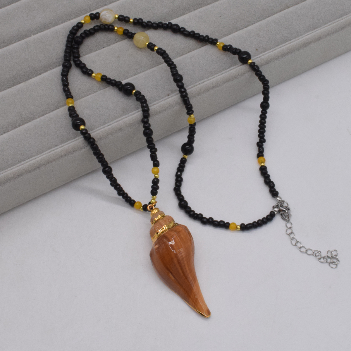 天然海螺吊坠黑色水晶珍珠串珠长项链时髦高级感秋冬新款毛衣链潮