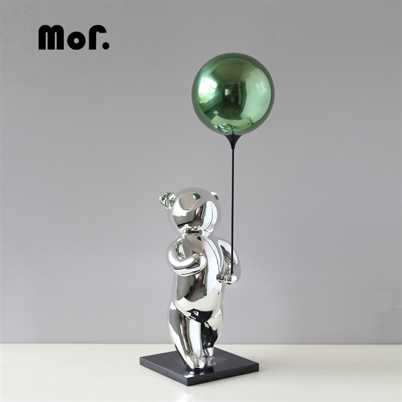 墨非 现代气球熊树脂金属摆件 样板间酒店儿童房民宿装饰物
