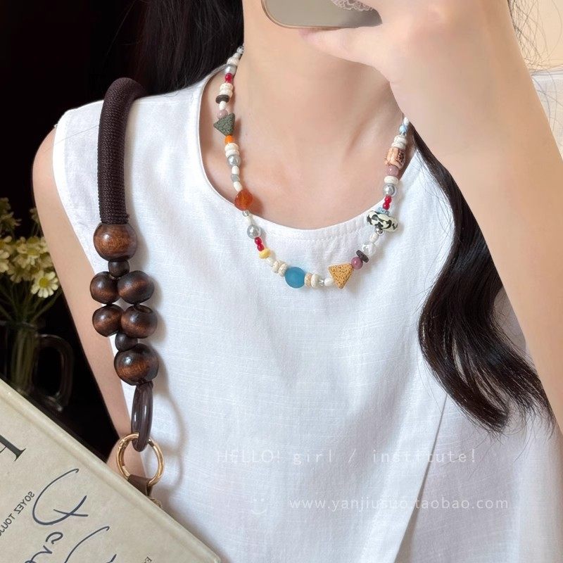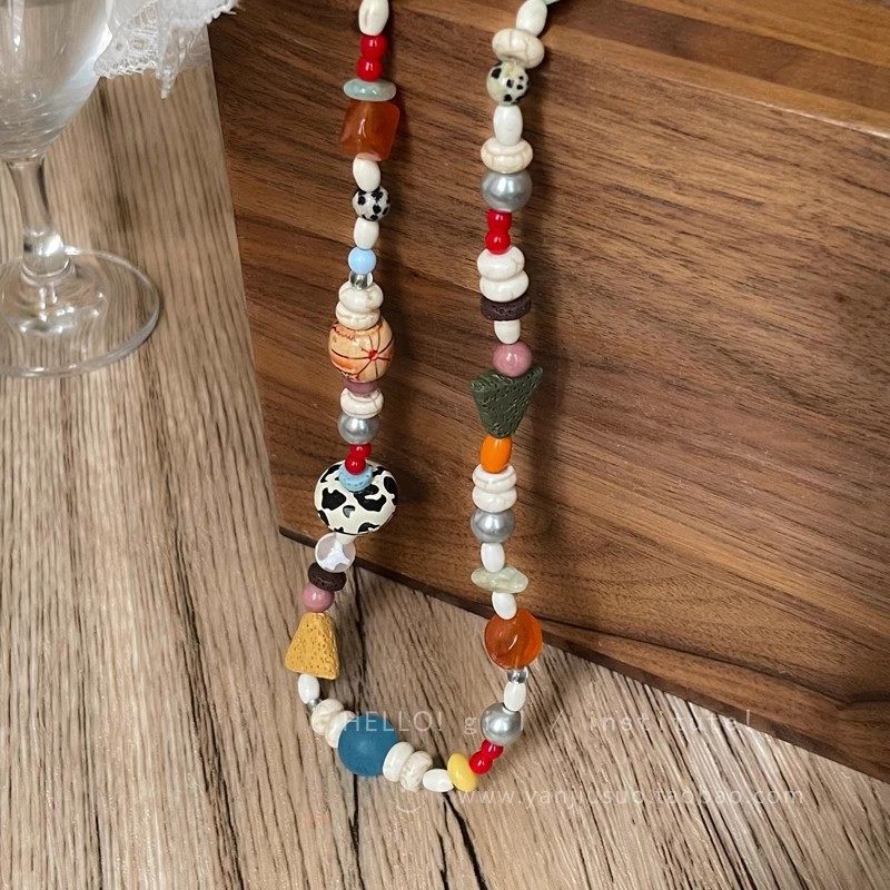彩色多巴胺串珠项链女2025新款夏日甜美锁骨链复古天然石颈链配饰