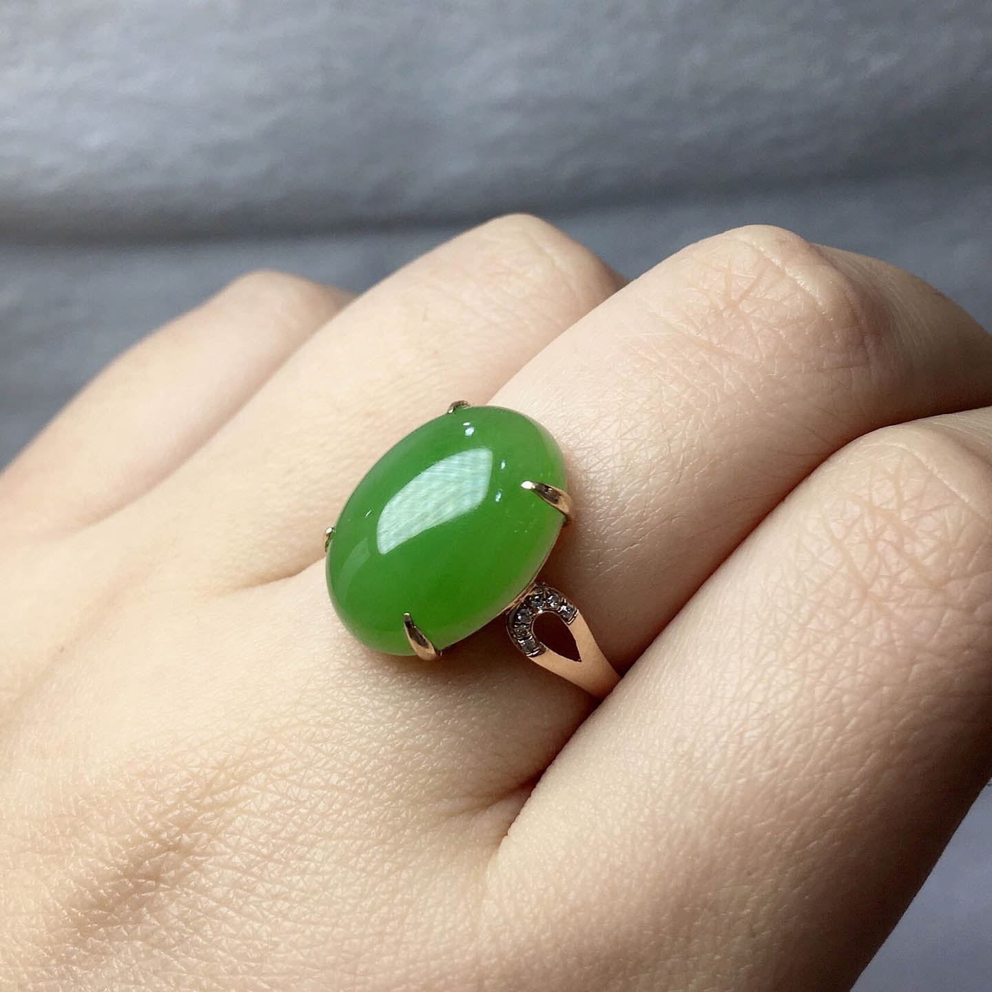 五一劳动节天然和田玉戒指女苹果绿碧玉蛋面镶嵌18k金指环送老婆