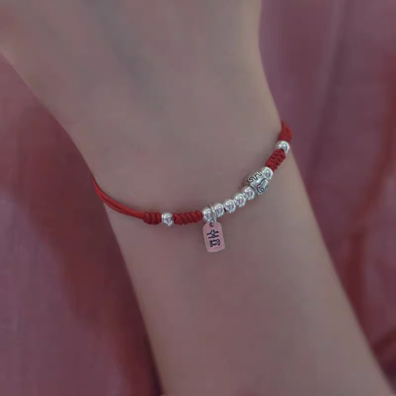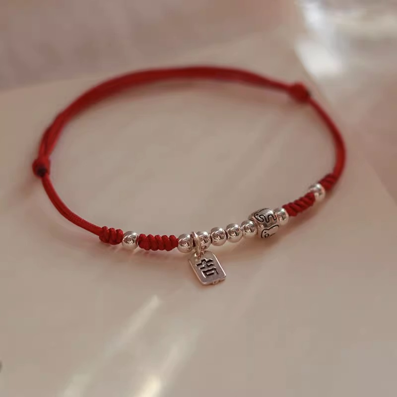 吉象可调节925纯银转运好运手链脚链转运珠男女情侣编织礼物手绳