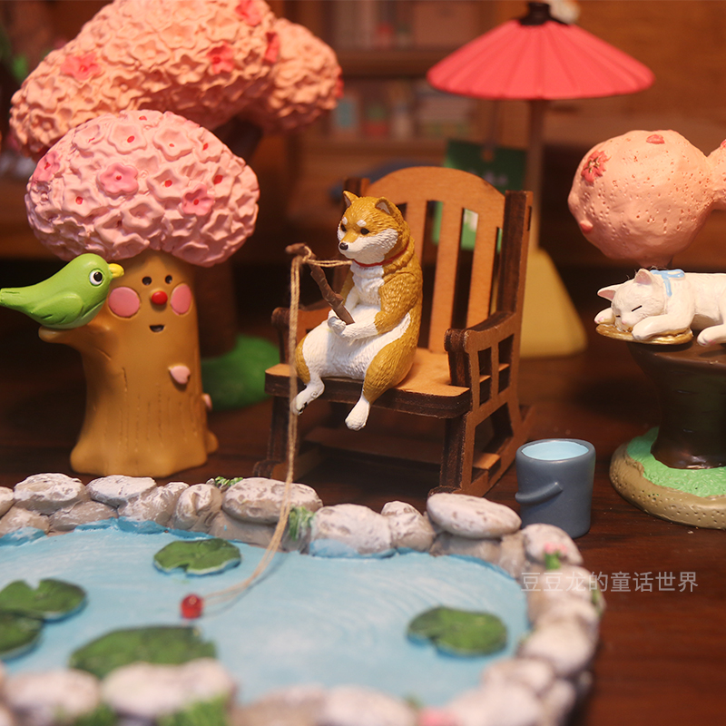 树脂小鸟樱花树摆件摇椅微景观花盆园艺治愈系造景桌面装饰