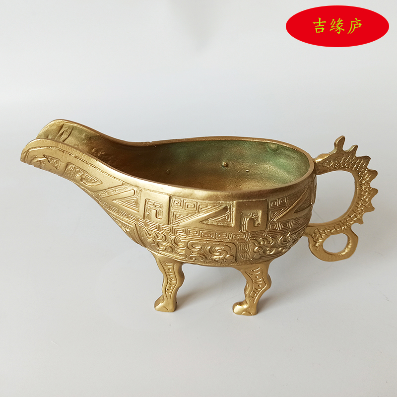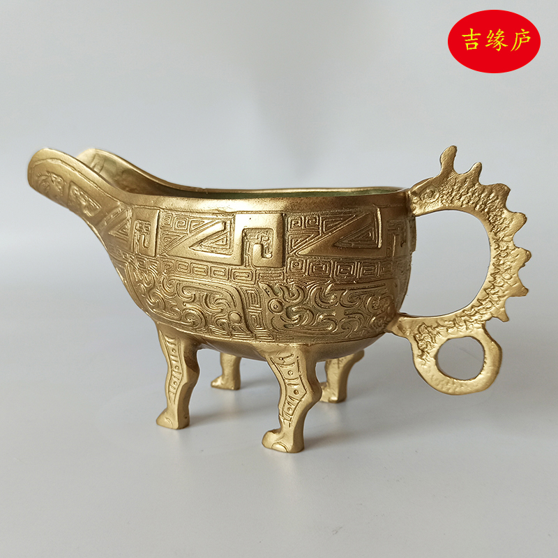 黄金匜青铜器沃盥西周匜家居饰品仿古摆件桌面摆设影视婚庆道具