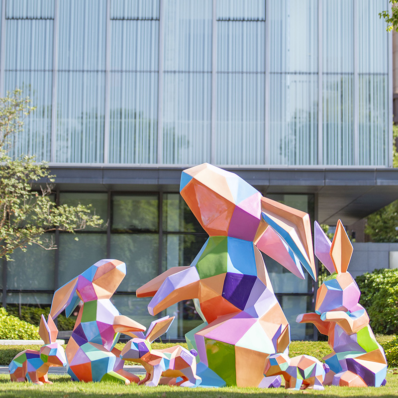 户外园林景观雕塑抽象几何彩绘兔子售楼部商场美陈活动装饰大摆件