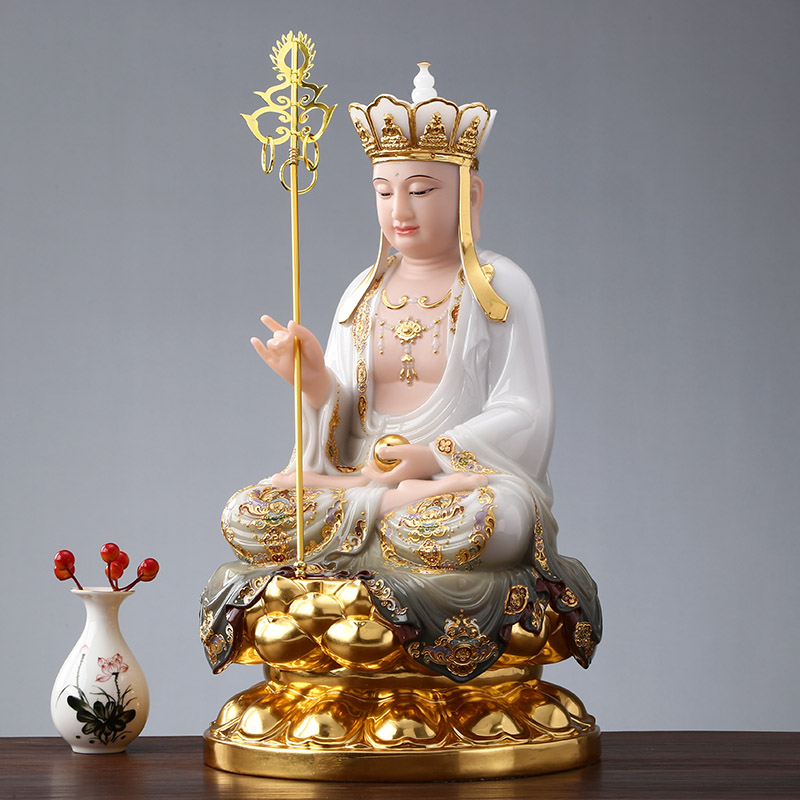 圆通佛具珐琅彩贴金地藏王佛像供奉家用汉白玉地藏王菩萨坐像摆件