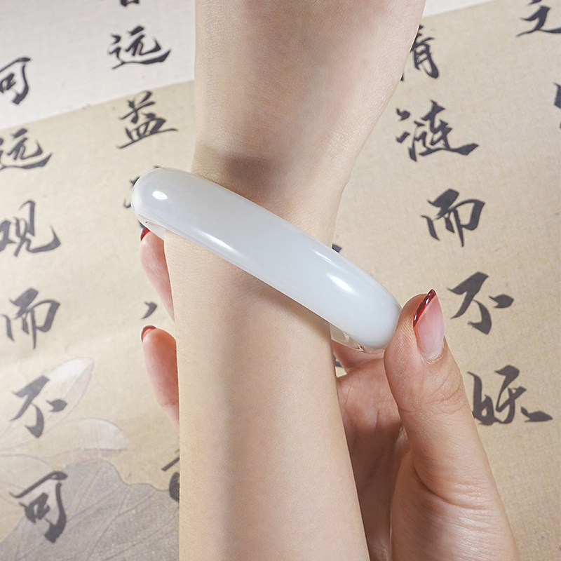 和合玉器和田玉羊脂白玉手镯山料白玉镯子扁条女款玉石首饰手55.5