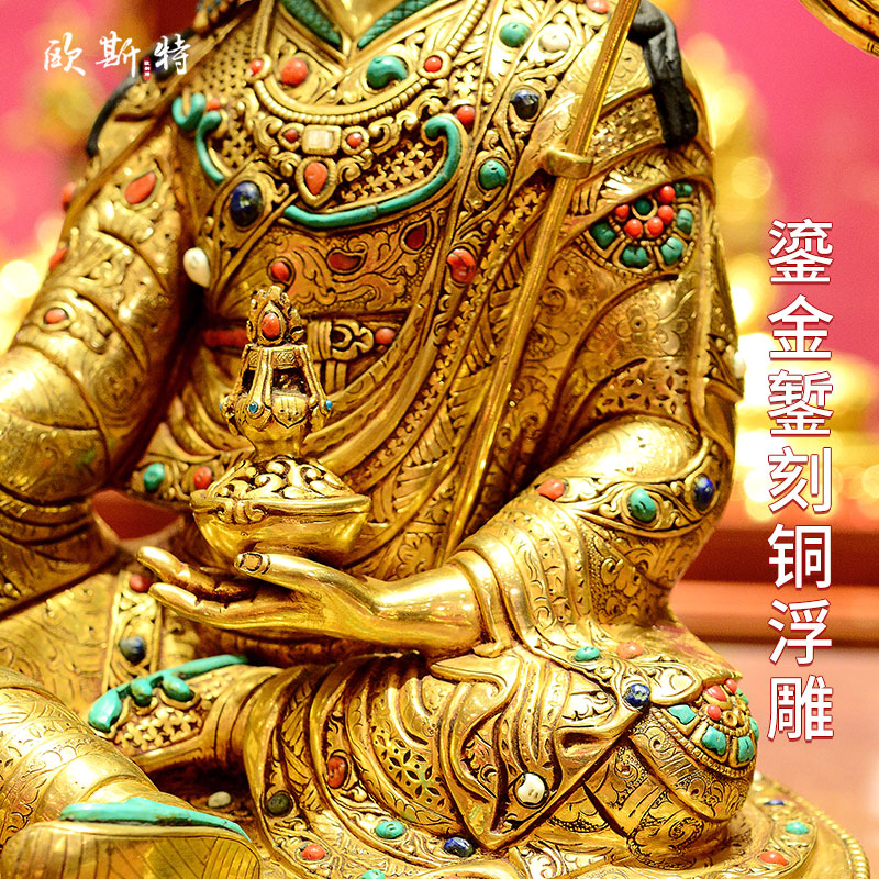 释迦族手工制作《莲花生大士》尼泊尔进口《莲花生大师》铜像摆件