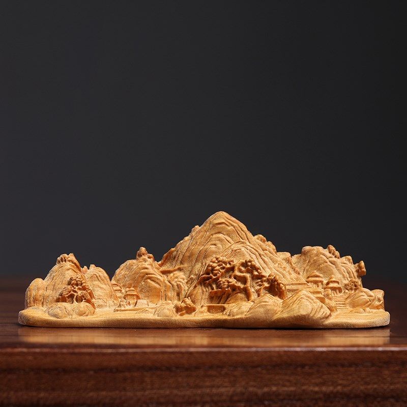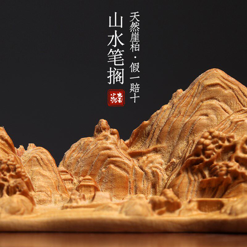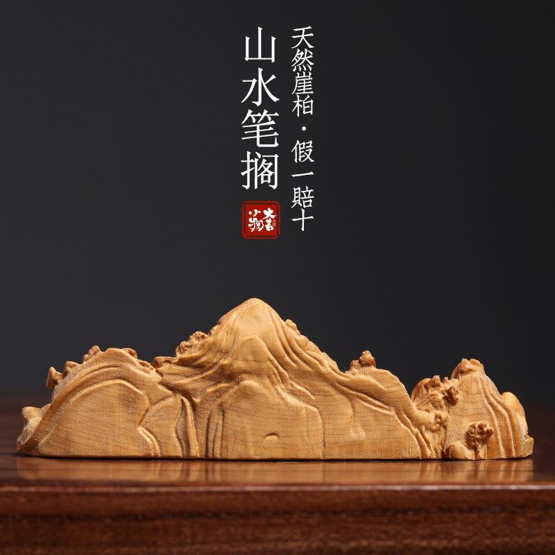 天然崖柏木千里江山水笔搁书法毛笔架桌面装饰镇纸镇尺案头小摆件