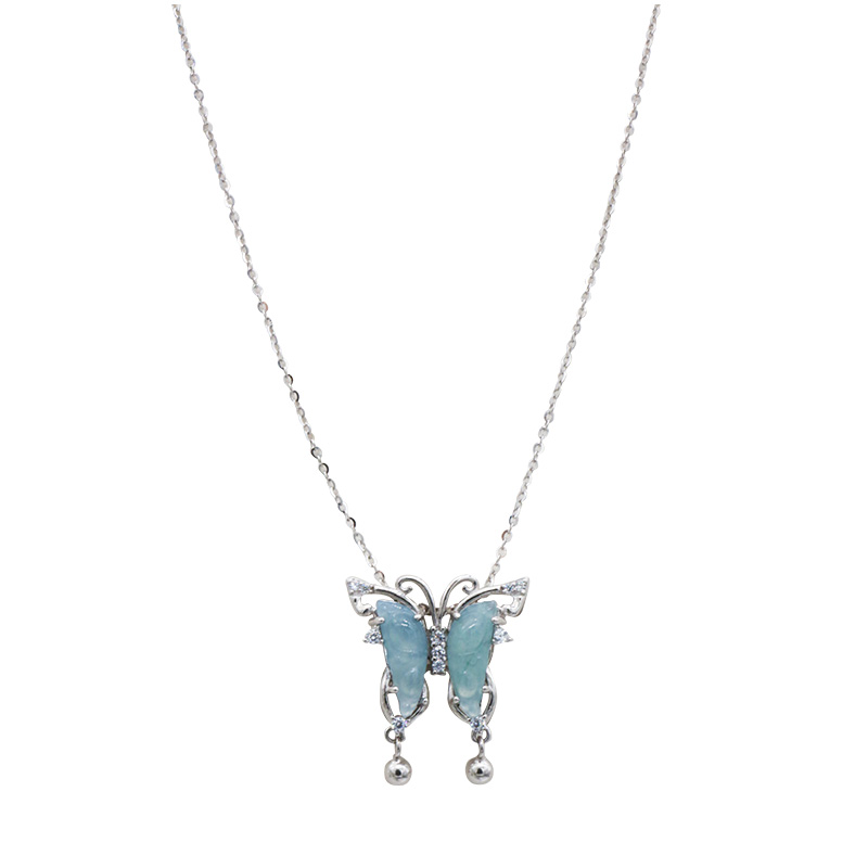 蓝水翡翠福蝶项链女新中式国风蝴蝶吊坠原创925银玉石锁骨链颈链