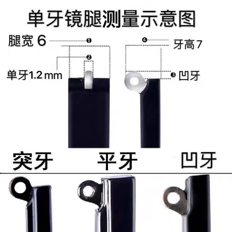 透明色眼睛腿通用配件单牙1.2mm腿宽6mm凹牙平牙凸牙任选镜腿一对