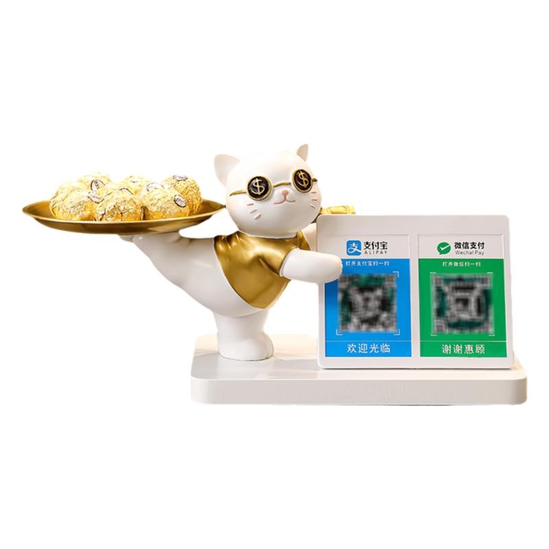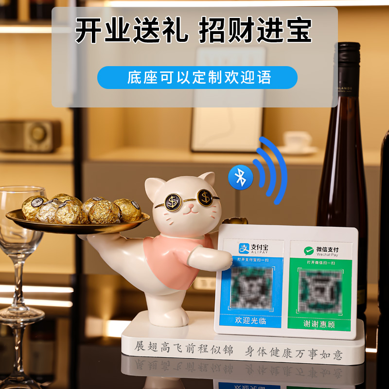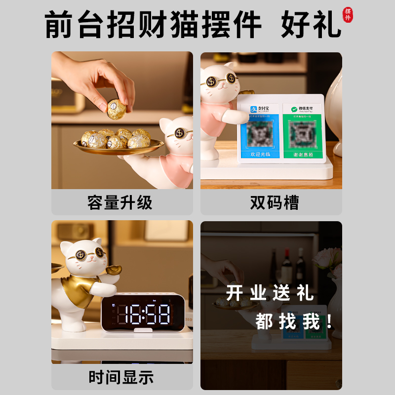招财猫收钱前台二维码摆件收银台时钟装饰新店开业礼物店铺发财猫