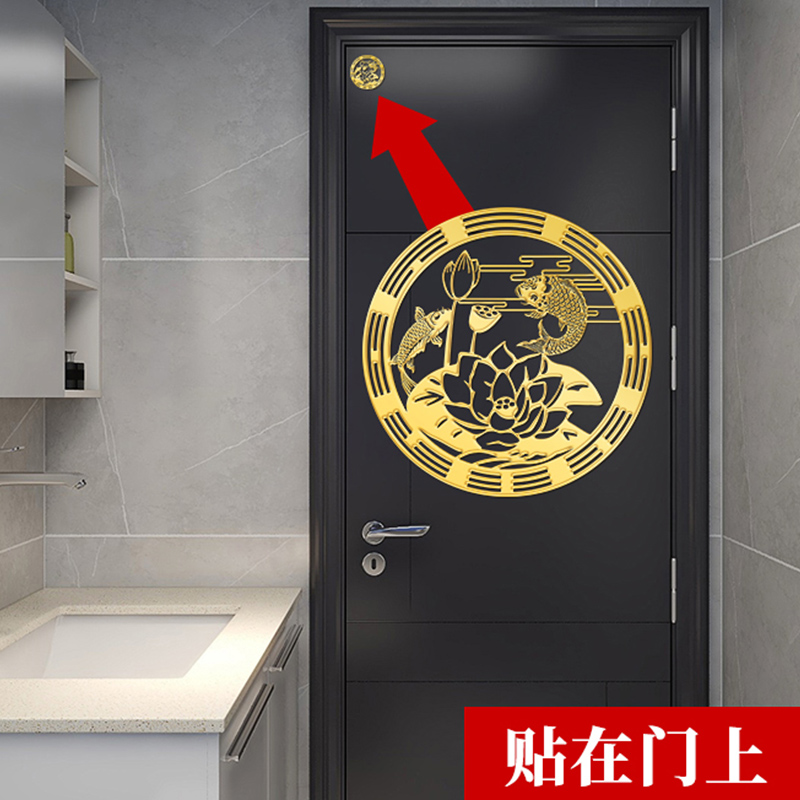荷花鲤鱼图卫生间贴荷花牌挂件净秽隐形贴九鱼牌厕所厨房金属门贴