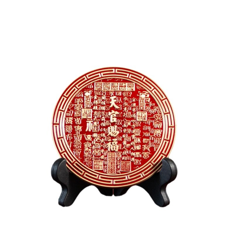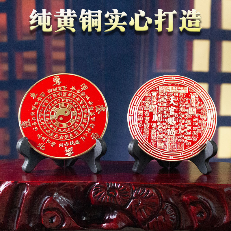 黄铜天官赐福红油桌面摆件乾坤铜器八卦牌天官赐福八卦牌桌面装饰