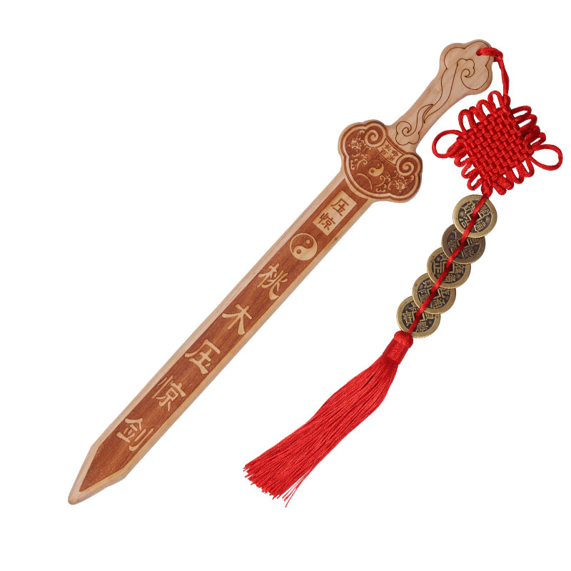 纯肥城雕刻桃木剑摆件挂件