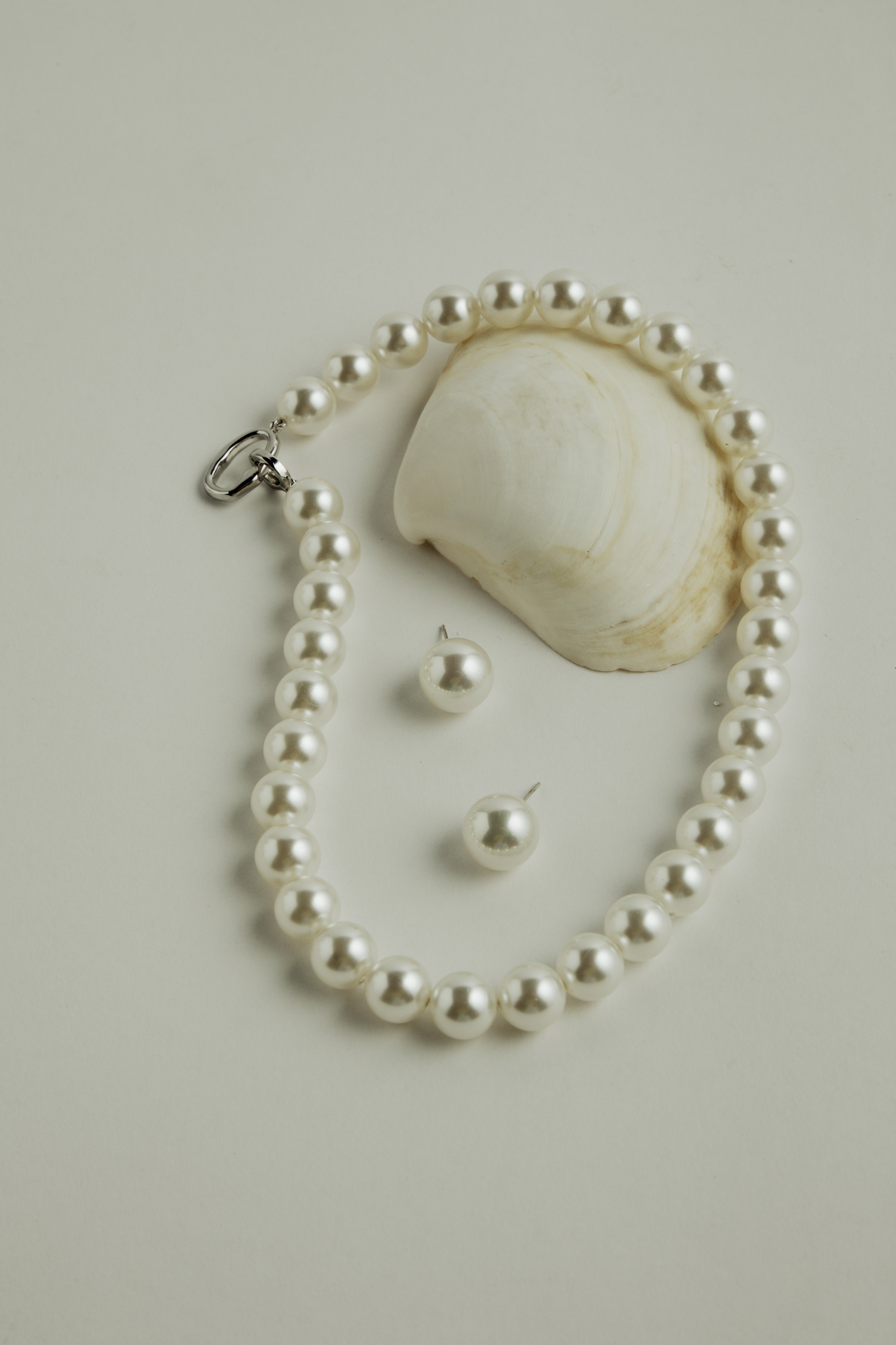 CANA GEMS白色珍珠项链耳钉 经典气质正圆轻奢高级感气质 QY0004