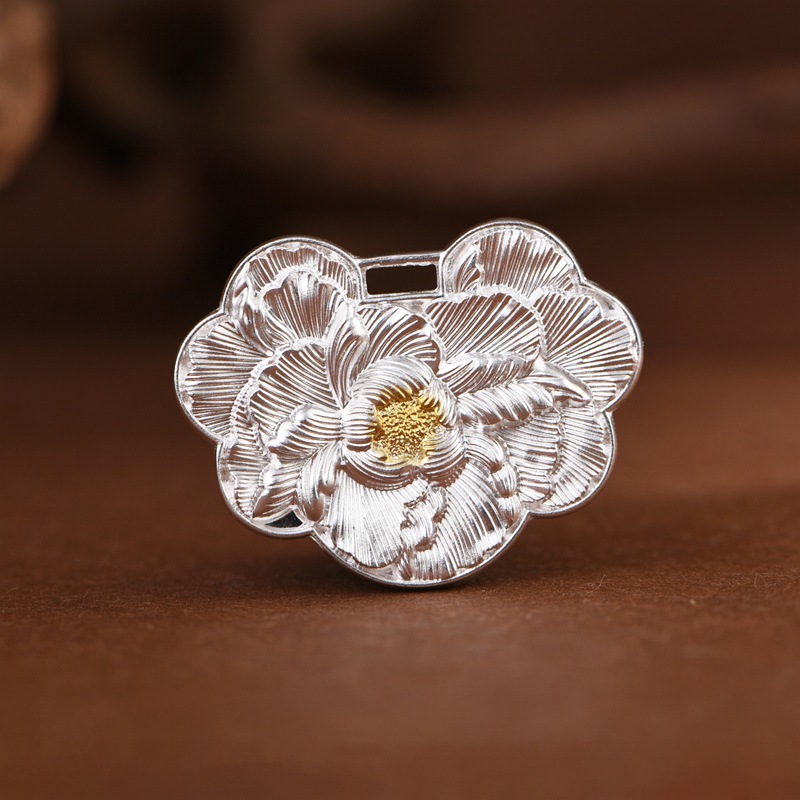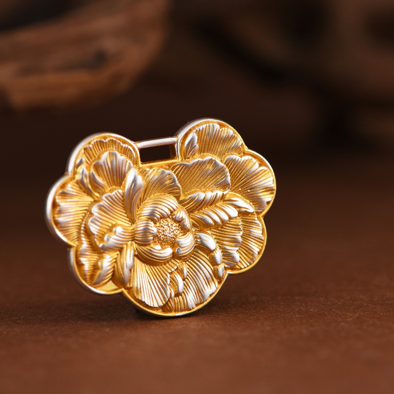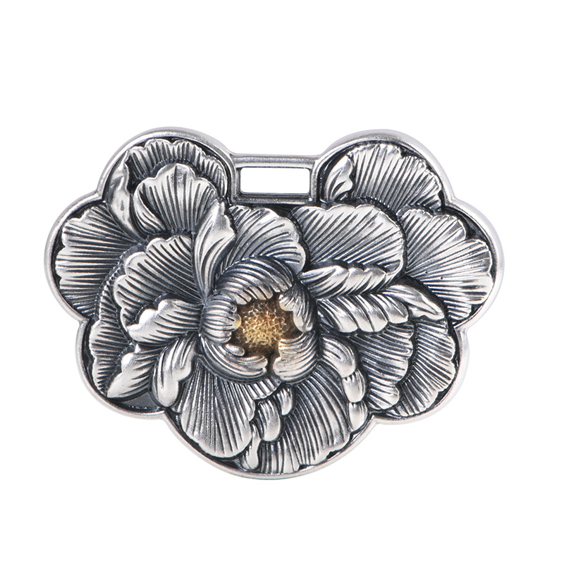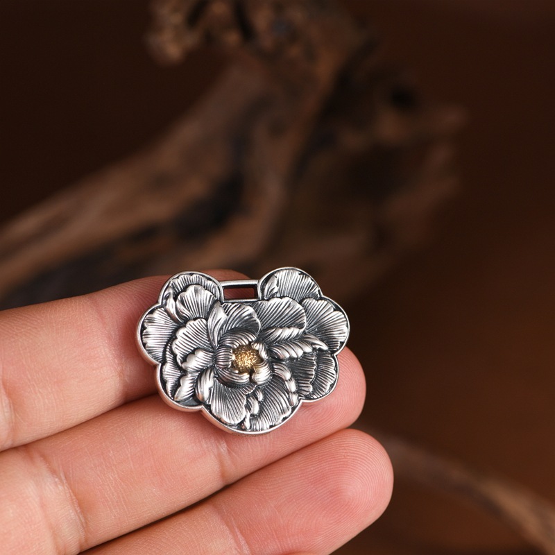 足银牡丹花锁包吊坠中式民族风女款小众设计珠宝风轻奢时尚小锁包