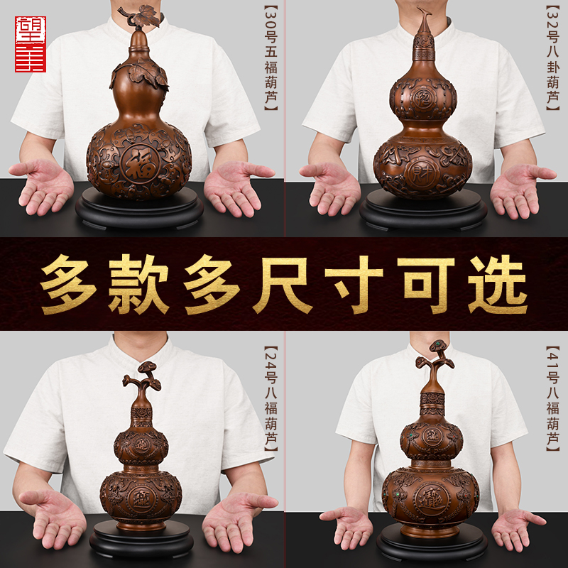 紫铜八卦葫芦摆件开口空心客厅招镇入户宅玄关床头财大号铜葫芦