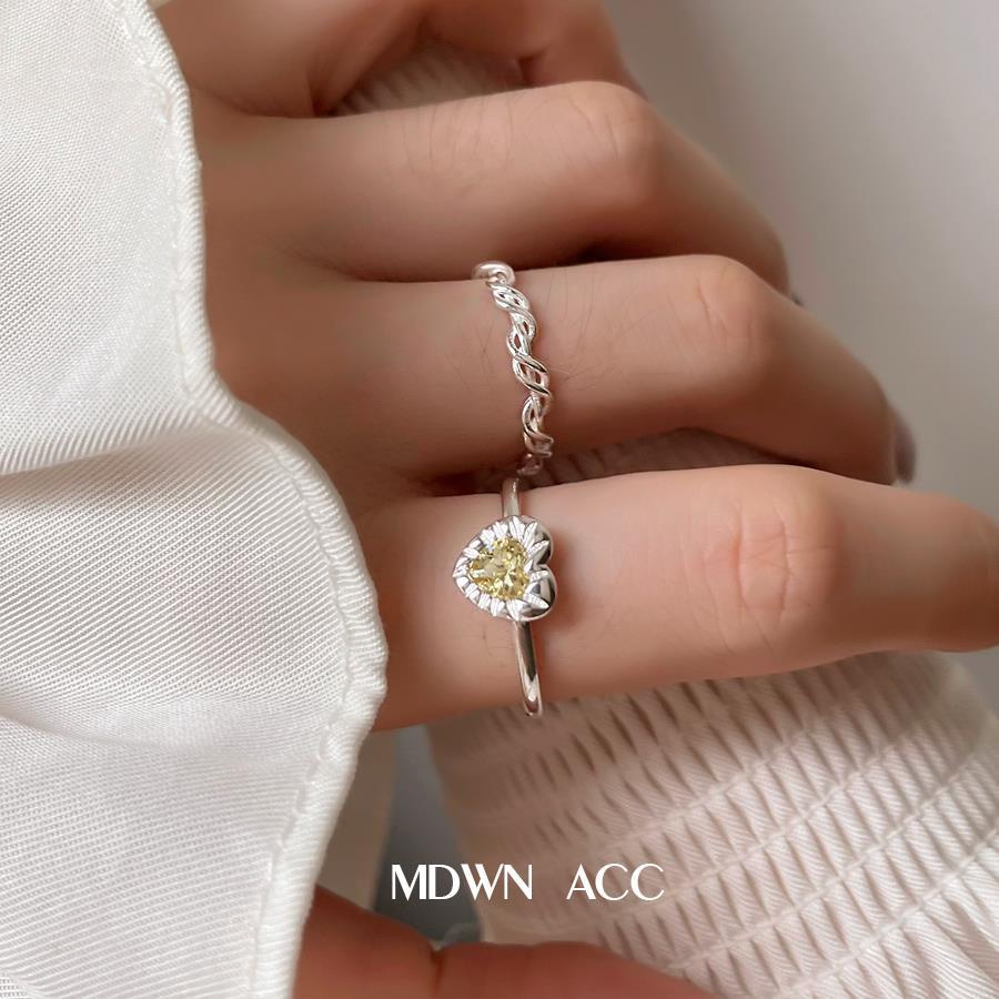 甜酷黄色爱心戒指女韩版先线条缠绕麻花开口指环气质食指戒潮