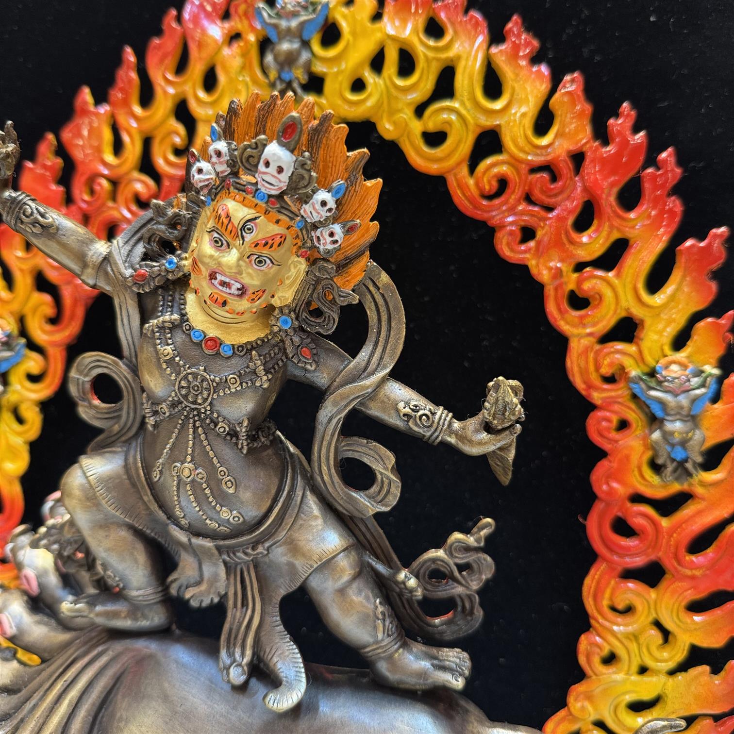 精工铜制做旧莲花生金刚铠甲护法彩绘带背光家居33cm55cm供奉摆件