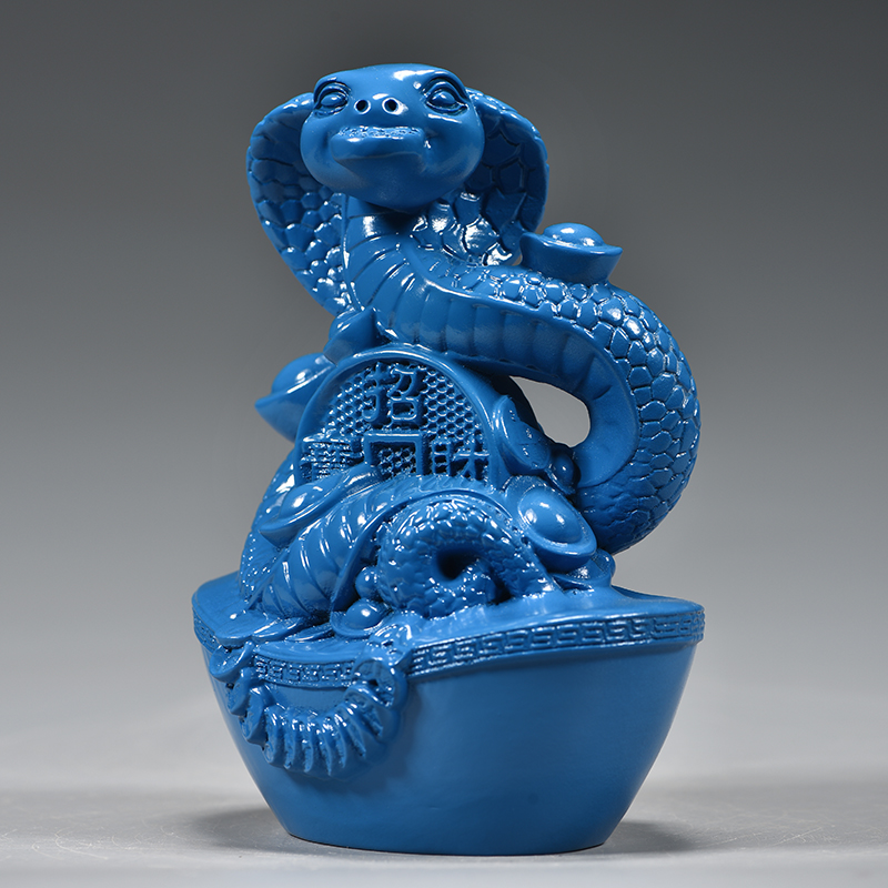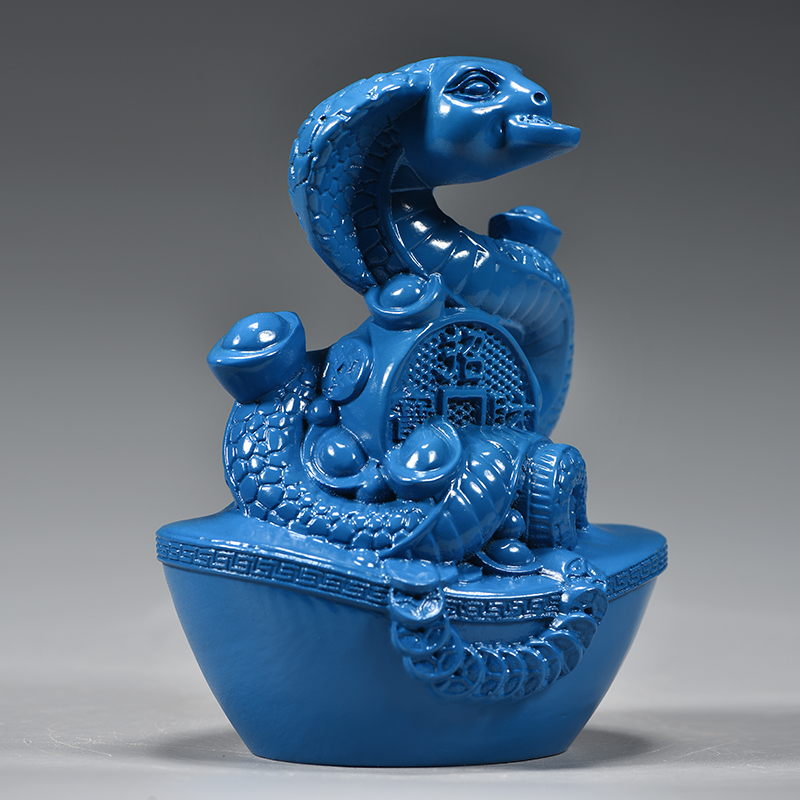 蓝色木质十二生肖蛇摆件实木雕刻眼睛蛇吉祥物木头装饰红木工艺品