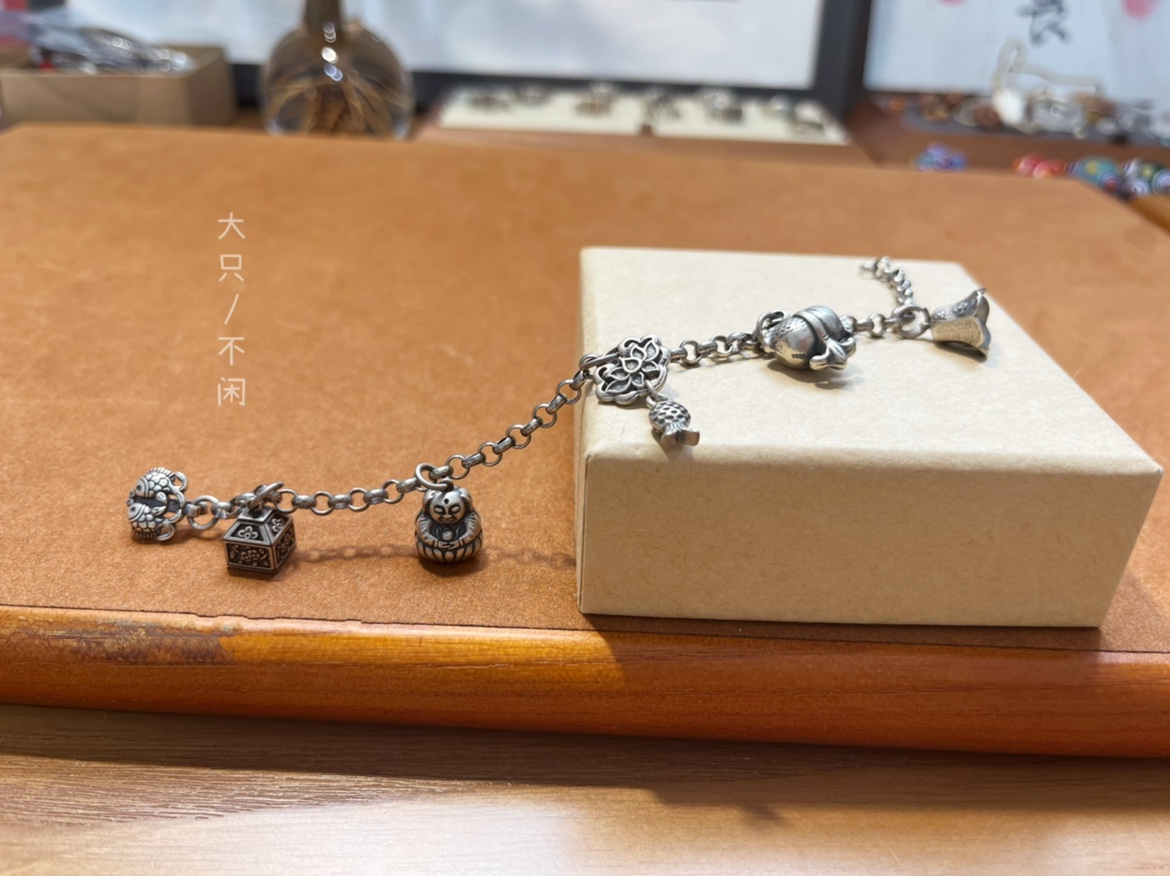 不闲原创手作 复刻老银手链传统吉祥祝福