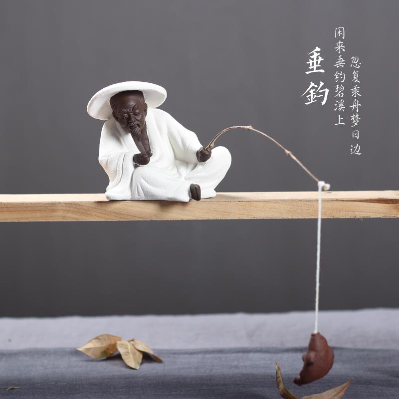 陶瓷姜太公钓鱼客厅摆件鱼翁鱼缸沉底装饰假山根雕水族箱意境造景