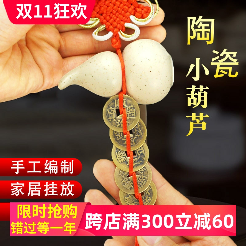陶瓷葫芦厨房在西北火烧天门简约小葫芦家用中国结五帝钱装饰挂件