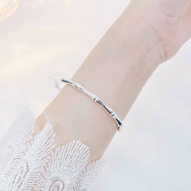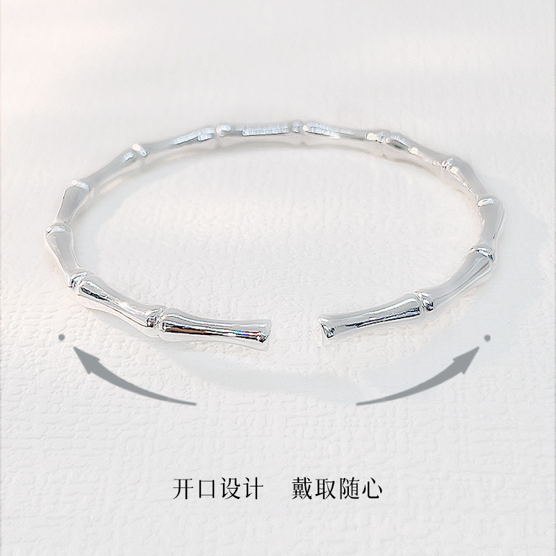 999手镯实心年轻款竹报平安镯子新款光面开口送女友银足竹节纯银