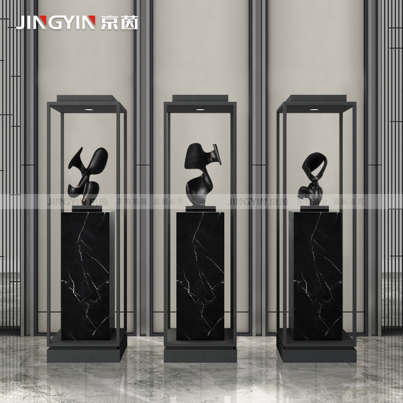 落地大理石雕塑底座酒店商场办公楼走道摆件橱窗带灯展台石墩基座