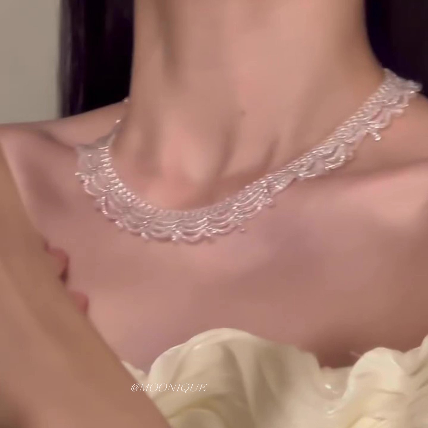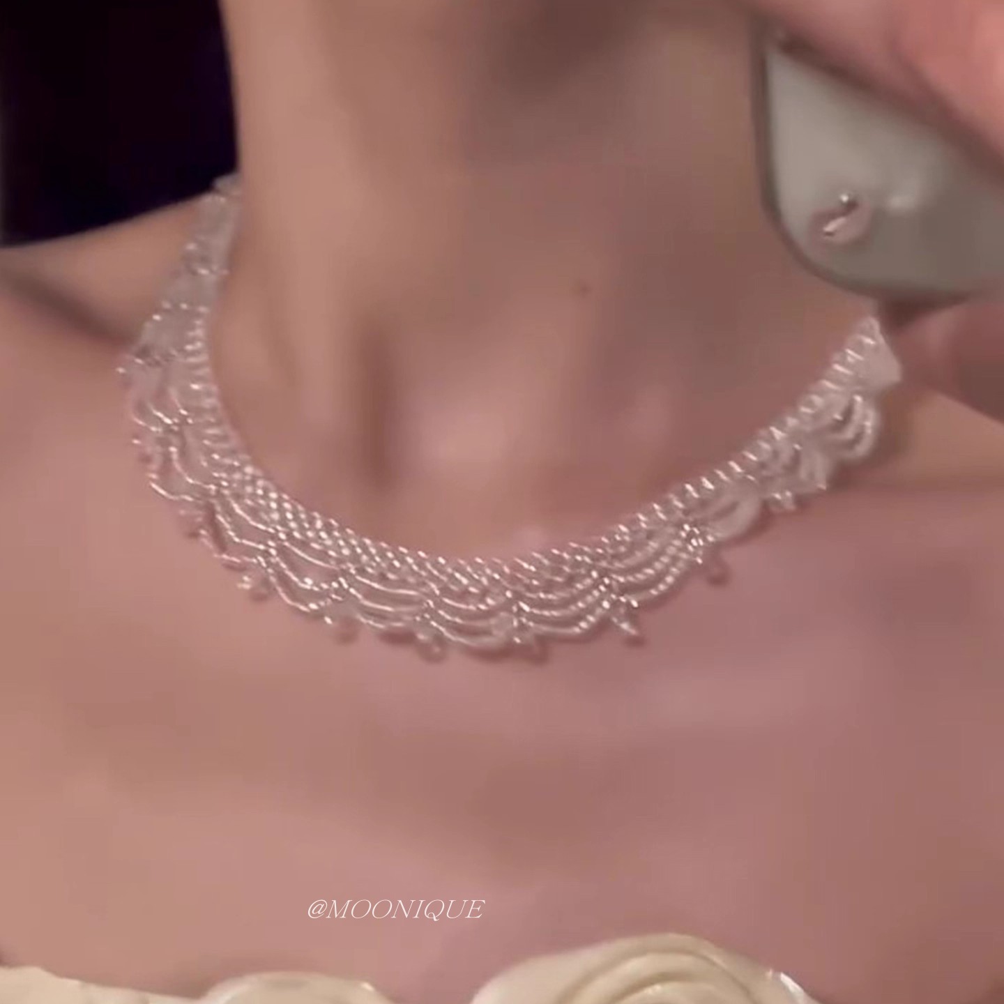 法式多层蕾丝花边串珠项链女冷淡风小众重工编织叠戴choker锁骨链