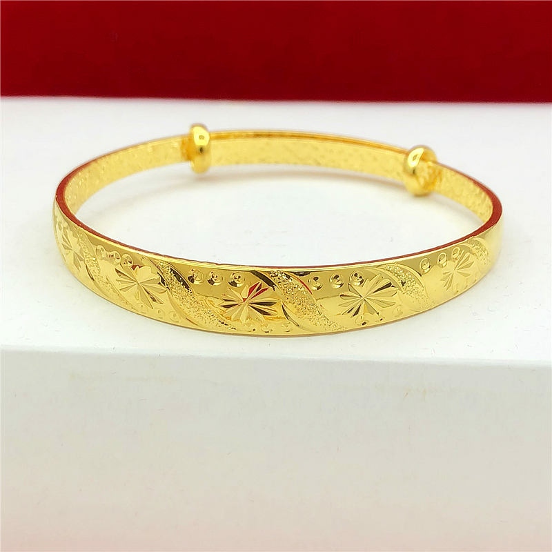 经典不掉色仿金光面手镯 女士满天星推拉镯子 沙金送老人饰品手镯